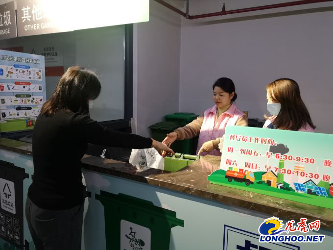 在洲岛紫园社区星洲府澜庭小区,记者看到资源分拣站分类流程运转体系已经进入常态化。小区的垃圾分类公示栏上明确了“社区、物业、网格员、指导员、志愿者”五位一体的责任网格体系,既有垃圾分类投放指引,也有收运时间和收运企业负责人联系方式等信息,垃圾处理的去向也一目了然,全流程接受业主监督。在人工督导投放区域,志愿者督导员每日早晚定时桶边值守,坚持宣传讲解、协助分类、指引和监督。考虑到居民周末作息,非工作日的人工投放时间还做了相应调整。经过前期的分类实践,小区物业工作人员发现,相比于同步使用的智能投放区,人工投放区的利用率要高很多,居民在投放过程中觉得更方便,更快捷。