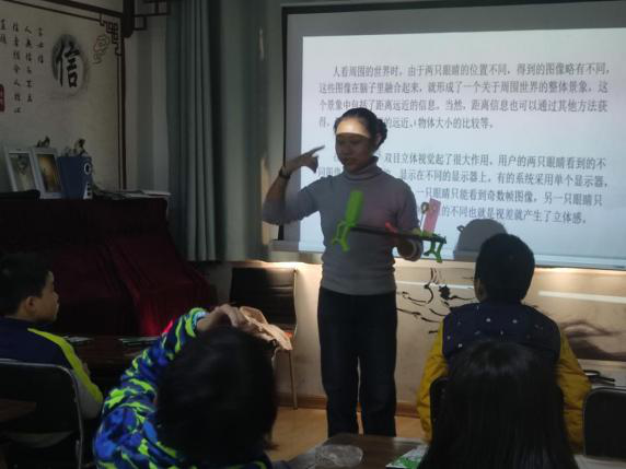 青少年们在了解了虚拟现实VR眼镜的成像原理之后,戴上VR眼镜,认真的观看起了有关中国党史的VR视频,透过小小的眼镜身临其境的感受炮火喧天中建立起来的中华人民共和国。本次活动既让青少年了解了现在生活的来之不易,同时也切身感受到了科技的魅力。