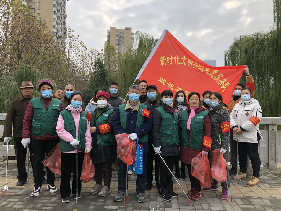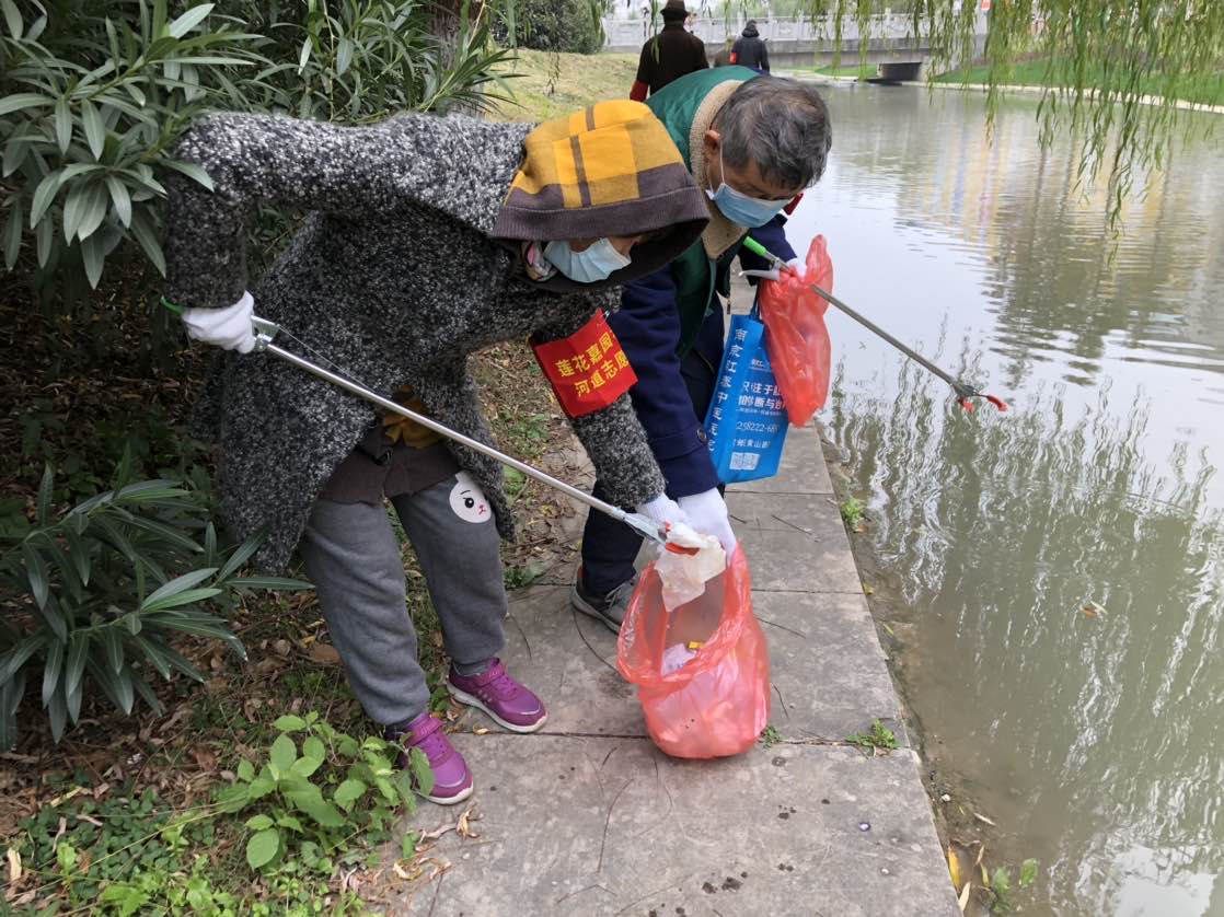 建邺区沙洲街道莲花嘉园社区开展河道及周边垃圾清理整治专项活动
