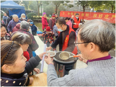 社区还为居民们准备了冬季养生粥,居民们品尝着分到手里的粥,甜在嘴里,暖在心里。志愿者们一边分粥,一边还为居民们科普养生粥的好处:“粥有和胃、补脾、养心、益肾、清肺、利肝、消渴、明目、通便和安神等多种功效,几乎把人体的五脏六腑都兼顾到了。”