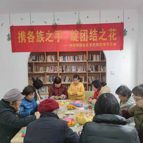 12月23日,明园社区在社区活动室举办了主题为“携各族之手,绽团结之花”民族风情节的手工活动,社区部分老人和孩子参与了这项活动。