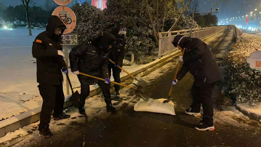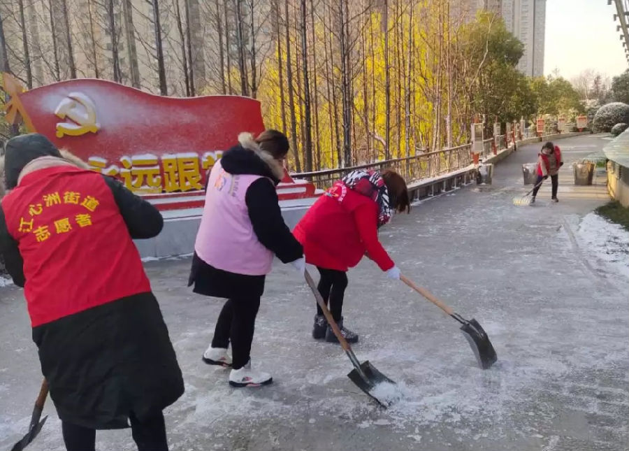 12月29日,2020年最强寒潮来袭,一场鹅毛大雪和“断崖式”降温席卷了江心洲。经过一夜的降雪、降温使得道路结冰湿滑,给群众出行带来不便。江心洲街道机关干部、党员、城管、志愿者深入各社区和重点路段开展破冰除雪行动,力保市民安全出行。