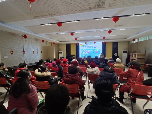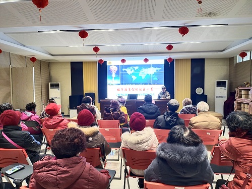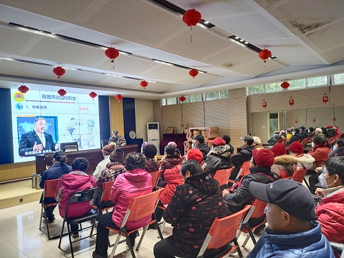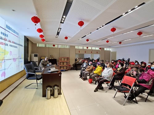 讲座中,王教授通过PPT演示,结合国内外新冠疫情现状及处理措施向居民分析了我国周边国际形势,内容涉及中美关系、中印关系、台海形势,并用实际事例对居民进行了生动的讲解。