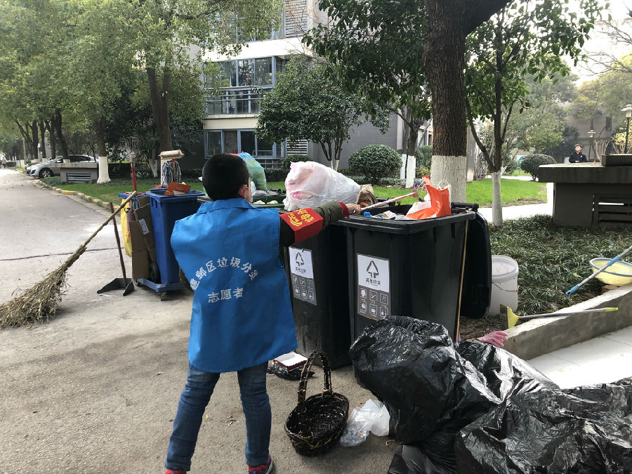 还没到达垃圾分类收集点,小朋友们就兴奋地互相出题,“你看这个塑料袋是什么垃圾?”“其他垃圾!”“那这个纸盒呢?”“可回收垃圾!”……