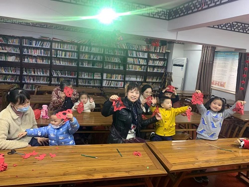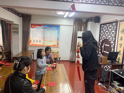 活动开始,来自南京工业大学的志愿者与家长及孩子们通过PPT的形式分享了过年的节日氛围和风俗让孩子们了解传统民间文化过年的“年”的由来。接着便是做中国结和剪窗花的活动环节,红红的中国结,红红的窗花纸,红红的颜色充满了喜气,洋溢着“年”的气氛,中国结和剪纸相融合的艺术手法,既有浓浓的中国韵味,又把知识的趣味性结合在一起,孩子和家长齐心协力,完成了一幅幅“颇有难度”的作品。