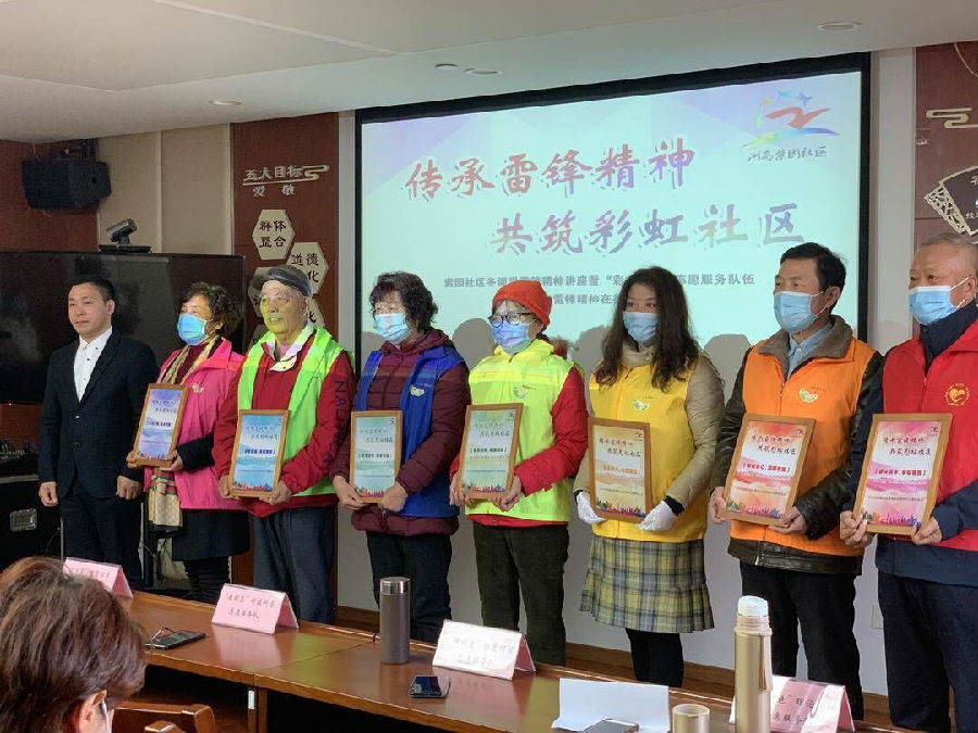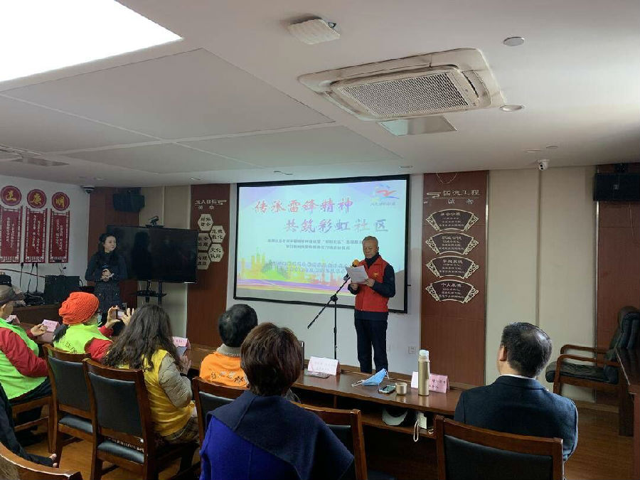 在第59个“学雷锋纪念日”即将来临之际,南京市建邺区江心洲街道紫园社区举行“志愿服务队伍学习新时代雷锋精神在行动”启动仪式,社区在2019年成立“赤橙黄绿青蓝紫”7支志愿服务队伍,因此被称为彩虹社区。这些团队对接了今年7个新年里的为民志愿服务。其中“青衿缘”教育实践志愿服务队承接的文化保护项目是在社区里征集、整理、传播100个家风故事,一方面营造良好的学习氛围,另一方面宣扬家风,知行合一。