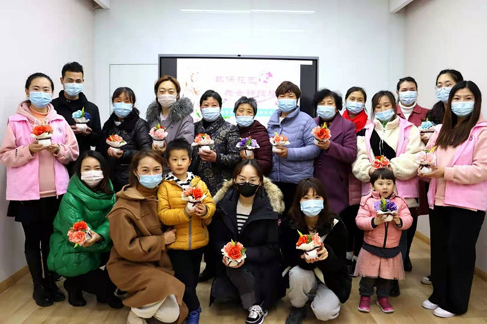3月6日下午,吴侯社区筹备组联合鹤鸣幼儿园、巾帼一家亲公益组织,带领辖区妇女骨干开展环保花艺制作活动。