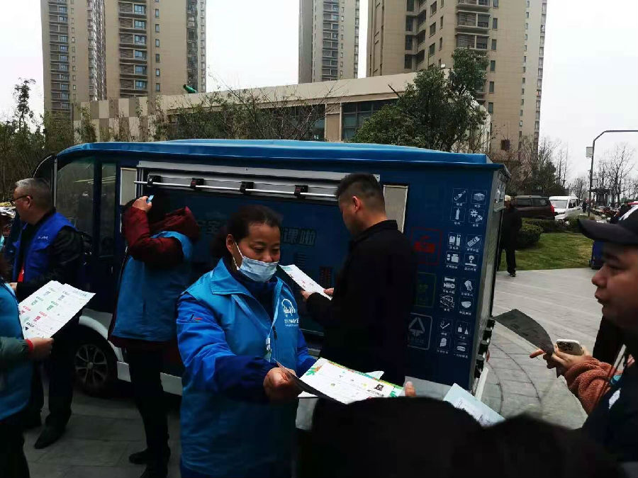 按照活动计划,上午10点30分,街道城管分管主任潘咏敏带领15名志愿者进行上门入户宣传,向周边小区居民发放宣传单页,讲解垃圾分类知识、垃圾分类小妙招、社区垃圾分类情况、积分兑换等多项内容,并叮嘱志愿者们耐心解答居民们的疑问。