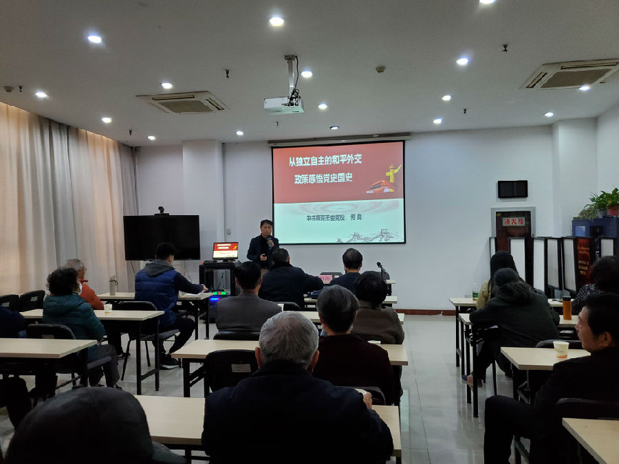 为庆祝中国共产党成立100周年,进一步开展好党史学习教育,本次“宣德堂”理论巡回宣讲走基层活动,融侨社区邀请中共南京市委党校政法教研部讲师何良博士为党员宣讲《从独立自主的和平外交政策感悟党史国史》主题课。