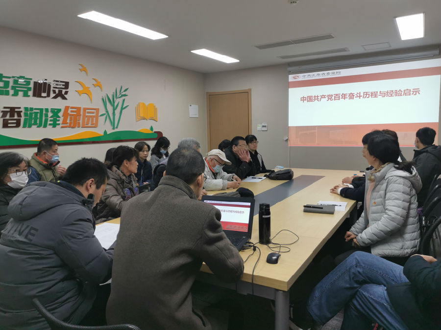 为庆祝中国共产党成立100周年,引导党员深入学习党史、发扬光荣传统、坚守初心使命,江心洲街道洲岛绿园党支部邀请省委党校马克思主义学院副教授黄建军为社区党员开展专题授课。