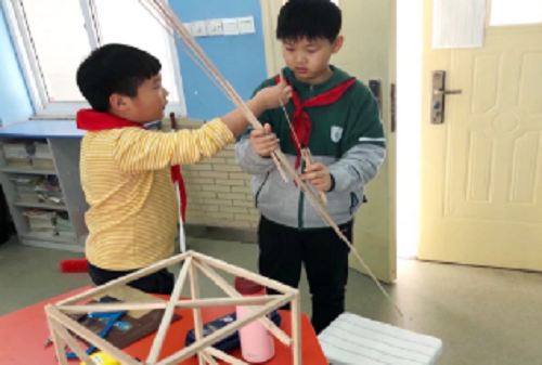 通过“木梁承重”科学知识讲座提升了孩子们三个方面的能力:一是思维能力,对空间设计有了一定的认识;二是创造能力,以引导式教学为基础,提升学生的创新力;三是动手能力,通过学习,加强孩子们手的训练,提升了孩子们的感知和认知。