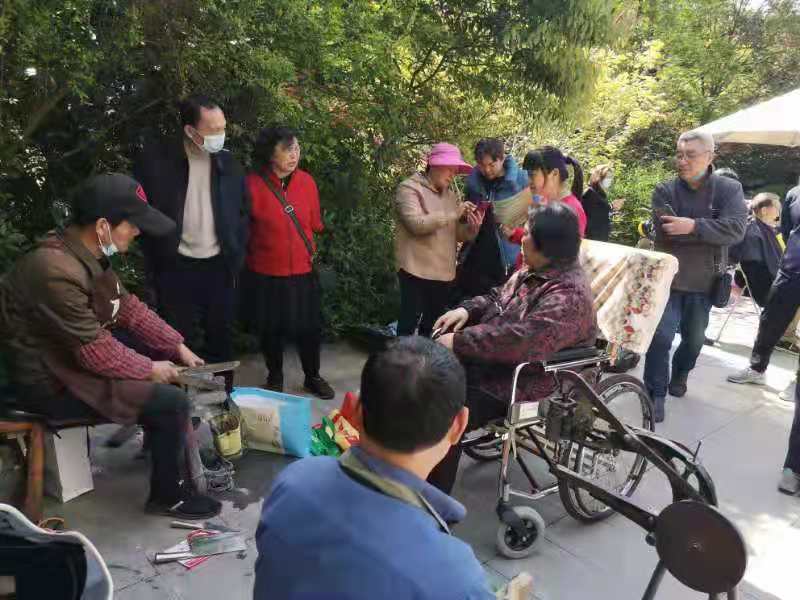一旁的老行当服务也集聚人气,磨刀、修伞、修鞋,理发等服务深受居民欢迎。