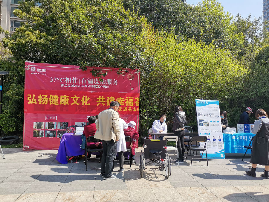 春意正浓,阳光和煦。四月9日,苍山路社区御江金城小区广场格外热闹,来自明基医院泌尿科和牙科的党员志愿者,以及乾生堂中医和8020口腔医院的医生们一边为居民科普健康知识,一边进行义诊。前来测量血糖血压的多数是中老年居民,他们适时对血压偏高的患者提出科学饮食建议,提醒他们要改变不良生活方式,多参加锻炼,发现头晕、头痛等问题要及早到医院进行检查治疗;不同的病症如何合理安全的用药,对前来咨询的居民进行一对一的耐心指导。
