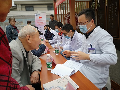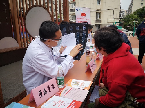 讲座结束后,专家们前往茶亭社区“同心圆”广场,为社区居民提供测量血糖、血压、心率等义诊服务,很多慕名而来的居民请专家现场查看病历、片子,帮助解答疑问,同时倡导居民养成健康、良好的生活习惯,以积极乐观的态度面对生活。