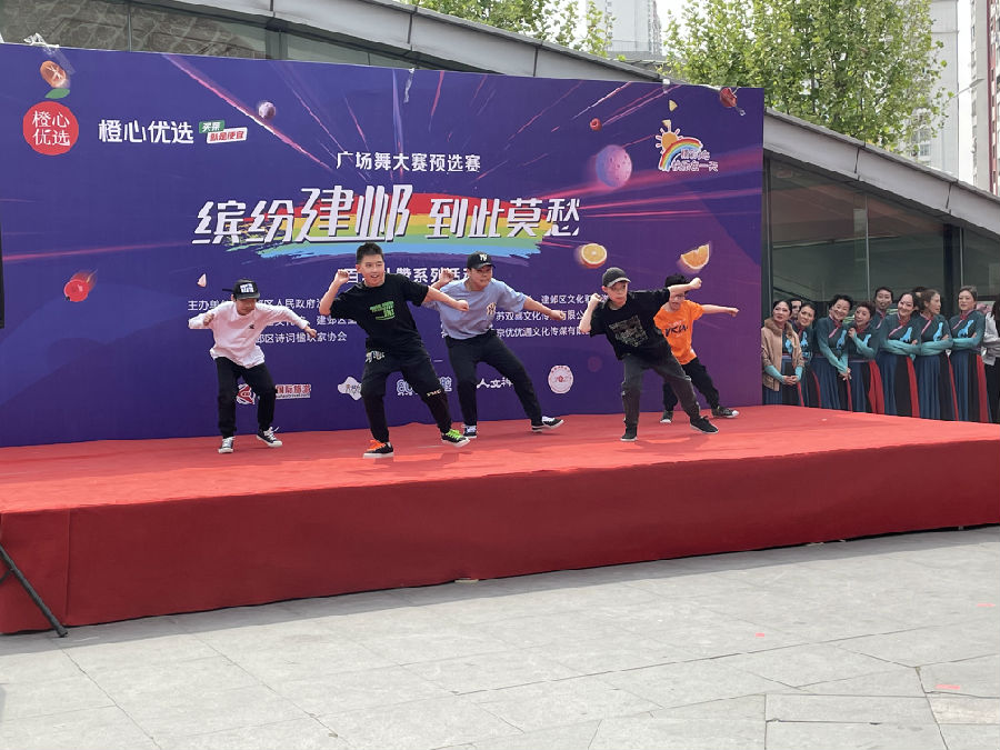 今年是中国共产党成立100周年,活动现场设立了党建宣传展区,向市民宣传红色故事。表演期间还穿插了党建问答、猜歌谜的互动环节,激发居民们的参与热情。
