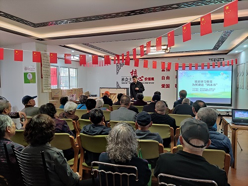 前期,党史学习教育明确“指定书目”为《论中国共产党》、《毛泽东 邓小平 江泽民 胡锦涛关于中国共产党历史论述摘编》、《习近平新时代中国特色社会主义思想学习问答》、《中国共产党简史》,阮教授从这四本书的主要内容出发,对每本书的产生背景,内容要点,学习重点等进行了详细的讲解,并声情并茂的穿插了自己对书的理解,“四本书是一个有机整体,需要融会贯通起来学习才能弄清楚历史事件的来龙去脉,准确把握党的历史。”阮教授的讲解为刚拿到这四本书的党员们的学习提供了阅读的动力和方向,刚拿到书的老党员黄金国听完讲授后,在休息期间就迫不及待的翻开了书开始阅读。