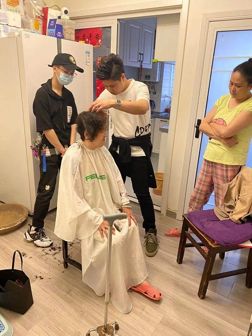 社区工作人员带领辖区志愿者来到重度困难残疾人家中,肢体一级残疾人平时行动不便,每次头发长都是他爱人给他剪,今天有专业的理发师给他剪头发,看着镜子里的自己,开心极了。此次共为4名行动不便残疾人理发。