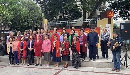 社区党委对在社区垃圾分类工作中表现较好的居民颁发奖品,推动居民把创造和谐、优美的社区环境作为己任,由己及人,让社区环境越来越整洁舒适。表彰过后,社区老年合唱团带来《革命人永远年轻》、《歌唱祖国》两首红歌,在建党100周年来临之际,表达基层党员和社区居民对党的无限热爱和对祖国美好的祝福。