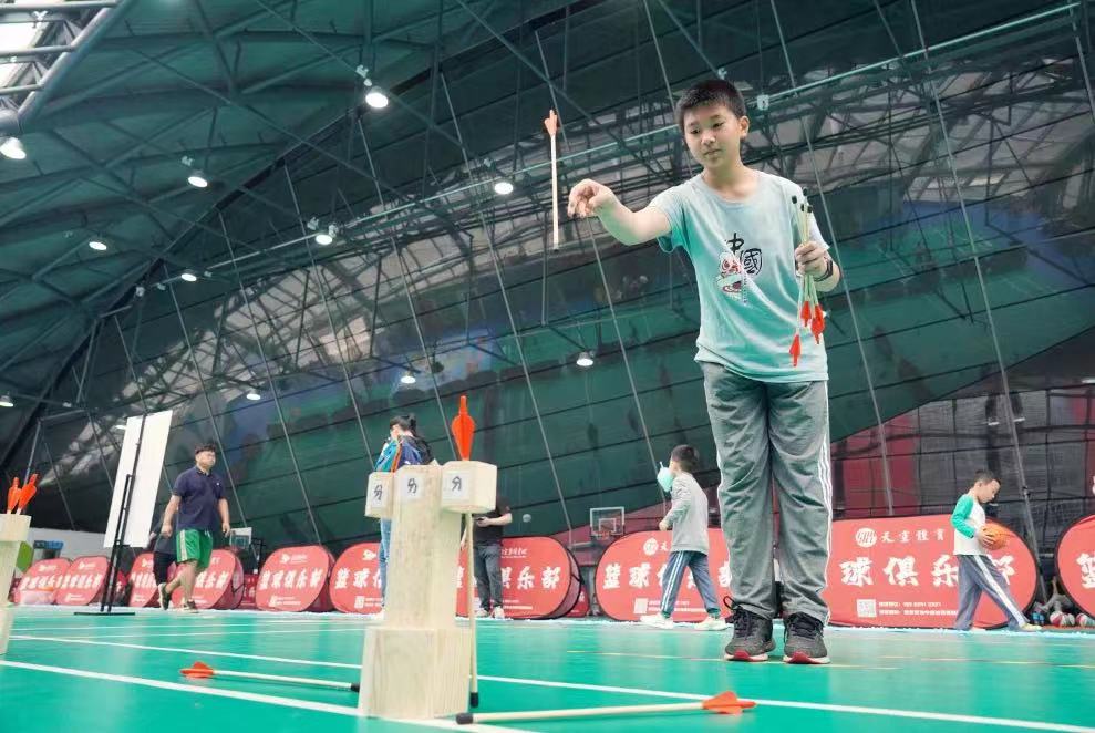 其中,飞箭投壶游戏锻炼了孩子们的专注力,他们拿着飞箭聚精会神果断投掷,投中的霎那,孩子们脸上充满着喜悦;篮球小游戏环节,也是以提升小朋友的运动能力为出发点,体现了亲子间的默契度;你划我猜环节,也是相当考验家长与孩子的配合,通过比划和描述,让孩子们进行思考想象。游戏限时的设置,也进一步增强了刺激挑战的体验感。