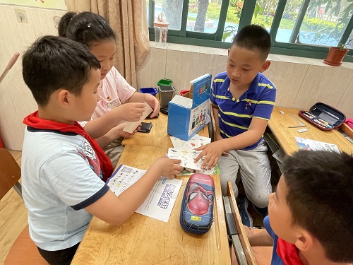 活动伊始,社区志愿者结合垃圾分类定制拼图、PPT和小视频,通过互动问答的形式,从垃圾的现状、垃圾的危害、分类与减量等方面,讲解垃圾如何从源头分类投放,如何实现垃圾减量和资源的有效回收利用,倡导学生学习和掌握垃圾减量和垃圾分类知识,遵守垃圾分类标准和规范。在此之后,学生小组讨论,我们作为小学生,为了避免此类污染,可以做哪些力所能及的事儿。