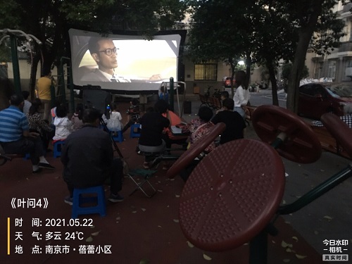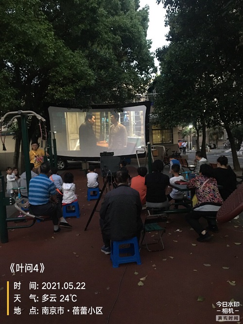 为了丰富社区居民的日常文化活动,通过露天电影形式,弘扬传统文化精神,5月22日蓓蕾社区组织社区内居民观看电影《叶问4》。
