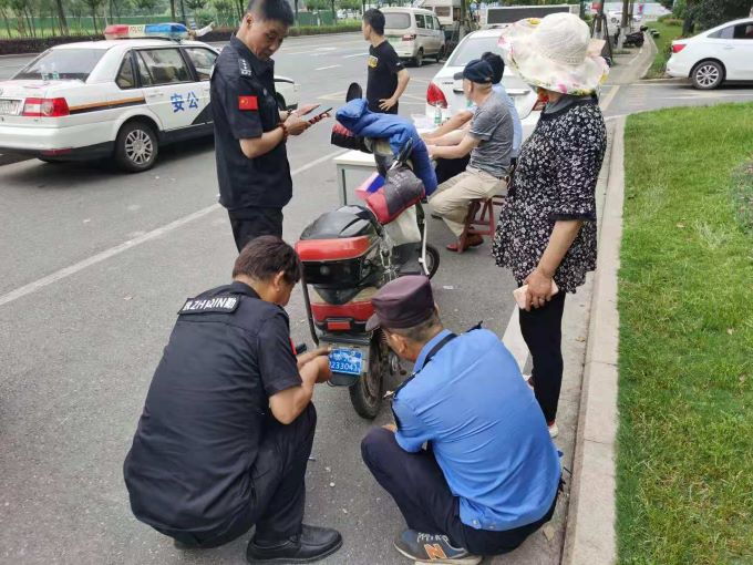 为让居民少跑腿,江心洲街道城管开展便民惠民服务,将上牌点搬进社区,设立临时办公区域,实行现场登记安装。对主动申报登记的无牌电瓶车,交警人员严格审核,符合要求的车辆现场登记车牌,并安排专员为车主进行安装。
