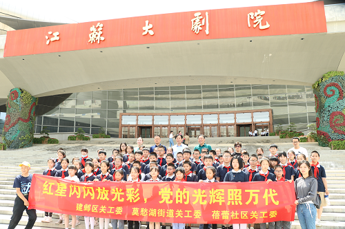 在中国共产党成立一百周年之际,为更好地开展“四史”教育,引导、帮助青少年深刻了解党的光荣历史及伟大成就,6月27日,由建邺区关工委主办,莫愁湖街道关工委、蓓蕾社区关工委承办的红色电影观影活动在江苏省大剧院举行。区关工委常务副主任周爱顺、区关工委副秘书长陈翠凤,莫愁湖街道关工委常务副主任樊其俊和蓓蕾社区五老、南湖二小80名师生一起,顶着夏日的骄阳参加了活动,在江苏大剧院的水滴影院观看了红色电影《闪闪的红星》。