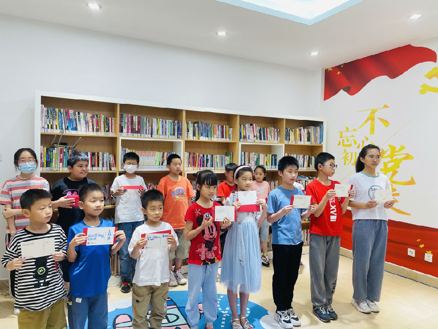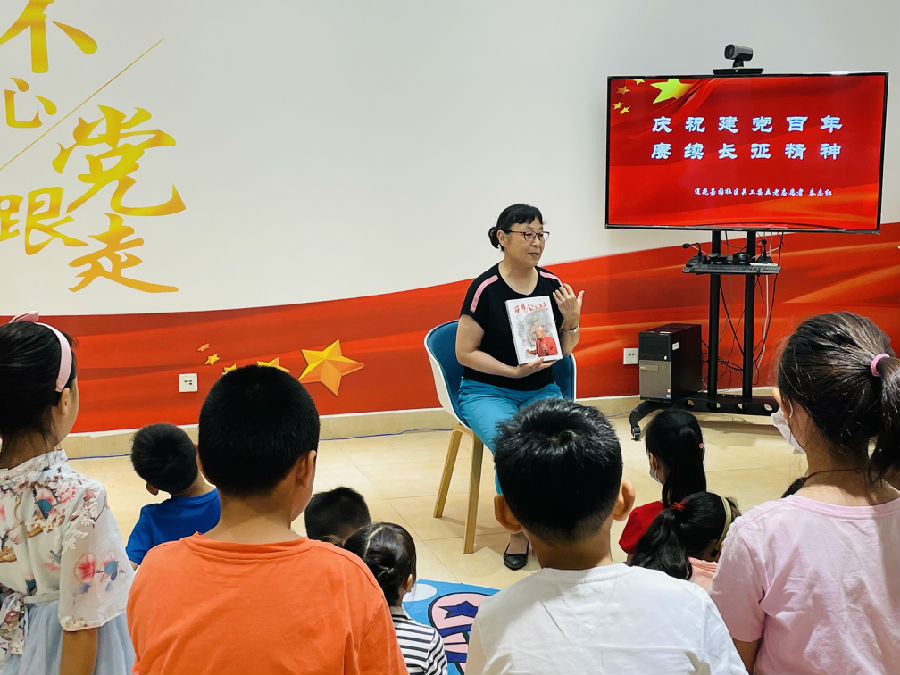 红色的七月,我们迎来了中国共产党百岁华诞。为庆祝中国共产党建党一百周年,7月4日,莲花嘉园社区的青少年们齐聚嘉荷书屋,与社区五老志愿者秦志红、南京邮电大学的邓艳华老师一起,开启了一场特殊的红色阅读之旅。