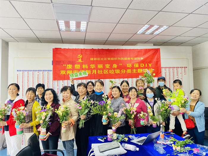 为了宣传环保理念,倡导旧物改造、低碳生活,进一步激发社区居民关心环保、支持垃圾分类,10月11日下午,新月社区联合绿益美境生态发展中心共同开展了一场环保花瓶DIY制作的活动,此活动吸引了社区内20位居民的热情参与。