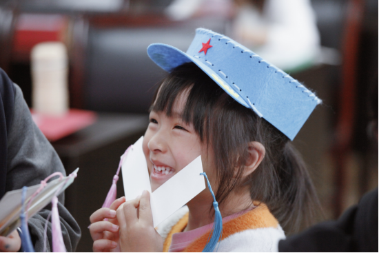 然后,吴老师带领大家一起,亲自动手缝制红军帽,看似简单的帽子要想缝好却不是一件易事。参加活动的青少年小兵说:“平时看妈妈缝衣服时挺简单的,自己觉得蛮难的呢!”小悦则说:“线太不听话了,我刚开始缝,线就打结了,幸好一旁有妈妈帮忙。”通过缝制红军帽让孩子们感受到生活中看似细小的每一件事,都倾注着家长们对自己的爱。