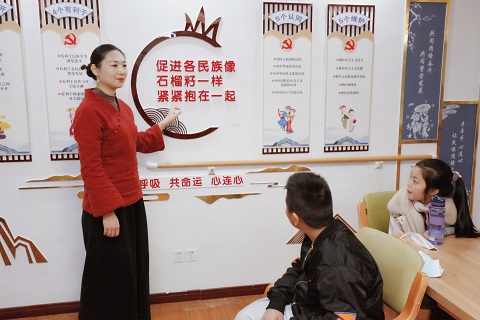 为了让社区青少年感受,56个民族红石榴精神,社区为青少年们开展了一场,关于56个民族名称和习俗的有奖小竞赛,让社区青少们认知在蓓蕾社区宣德堂上写着的红石榴家园的意义,活动中让社区青少年体验,红石榴家园题材的手工画,加深了青少年们的民族团结意识。