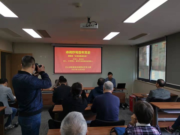 “红色经典”记录着党的光辉历史,承载着红色革命传统,为学好用好红色经典和重大主题读物,进一步推进全民阅读活动,展示建邺区爱读书、读好书、善读书的良好风尚,引导人们在阅读红色经典中汲取文化养分和精神力量,营造庆祝党的百年华诞的浓厚氛围,建邺区举办了“红色阅读进社区”活动,自十月份开展以来,持续推进,已经在建邺区十余个社区举办,参与居民人数近千人。本次活动将会持续到12月底,活动以阅读分享会、沙龙、读书会的形式展开,由作家、教授、讲师等根据荐读书目,按照学有所思、学有所获的要求,引导居民积极讨论交流,畅谈读书感想。