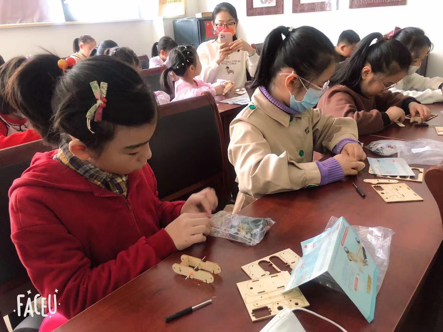 孩子们在指导老师的带领首先了解了仿生学的相关知识,了解了很多运用到生活中的仿生科技。接着在老师的逐步讲解下自己动手组装起了“为你点赞”仿生机器人,经过一个多小时的摸索,大家陆续都拼装完成,先完成的同学帮着身边遇到困难的孩子一起检查步骤,排除困难,还有心急的孩子已经波不急待的装上了电池,启动了机器人“点赞”模式。