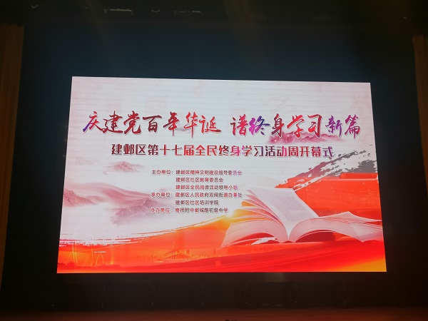 今年全民终身学习活动周的主题是“庆建党百年华诞,谱终身学习新篇”。开幕式通过“学旅同行”、“向阳奔跑”和“赓续精魂”三个篇章展现了建邺社区教育前行过程中的奋进与担当。既贴合主题又饱含温度的表达,让大家见证了建邺社区教育人的能力与追求,见证了建邺社区教育工作的内涵与成效。