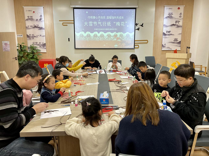大雪,是二十四节气中的第21个节气,也是冬季的第三个节气。民间流传谚语:“大雪不冻倒春寒”。为迎接12月7日的大雪节气,12月6日上午,沙洲街道中城社区开展了一场“二十四节气大雪——大雪纷纷梅花开”科普课堂,让孩子们了解二十四节气的由来,制作衍纸梅花,认识中国传统的民俗文化。