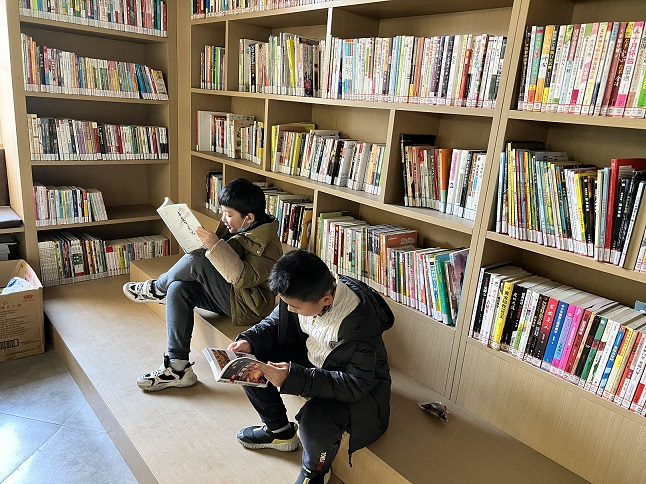 在社区图书馆中,孩子们各自挑选着自己喜欢的书本进行阅读,不时与身边同伴们分享书中的精彩之处。最后,在社工的的组织下,孩子们相互介绍了书中的内容和自己的读书心得,其乐融融,产生了浓郁的读书氛围。