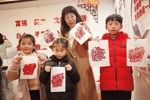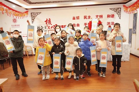活动现场,社区各民族青少年一起制作新春小手工·中国传统文化剪纸,传统文化剪纸,是农耕文化的特色艺术,富有鲜明的中国民俗情趣和艺术特色,各民族青少年,一起剪出吉祥纹样,烘托出浓浓的喜庆气氛。