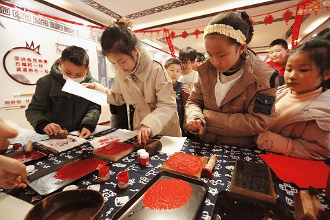 莫愁湖街道蓓蕾社区举办“虎虎生威·迎新年”民族文化活动(三)----雕版中华立轴制作培训