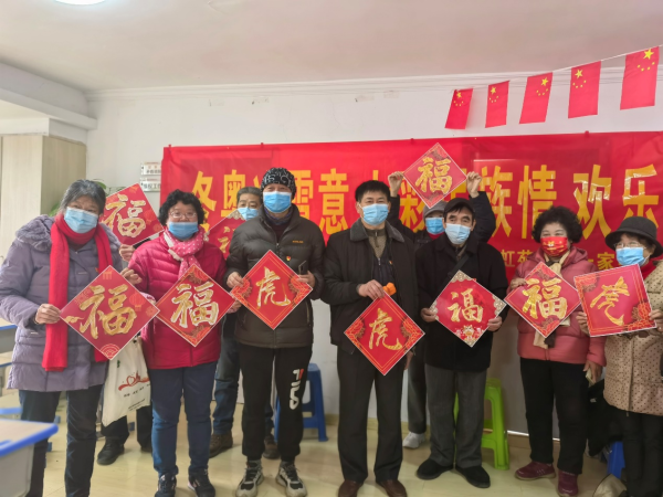 “送福字”“既是吉祥如意的象征,也是人们表达对即将到来的虎年的美好祝愿的两种方式。在一家亲工作站大厅里居民们认真地在纸上描下一个个福字,欢声笑语在大厅里传开。