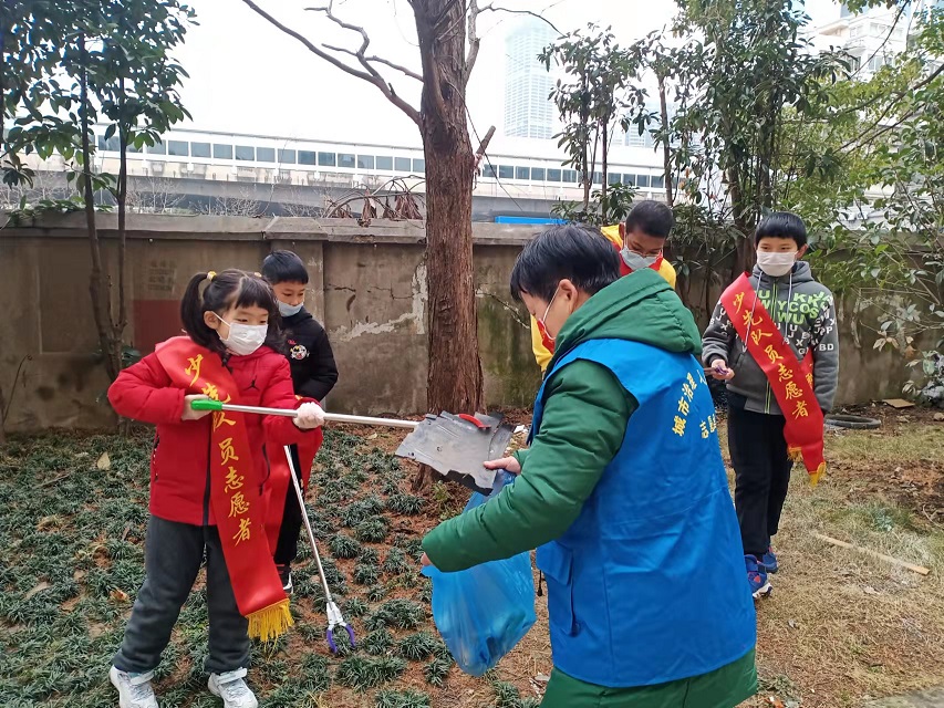 2月13日,社区组织青少年和垃圾分类志愿者开展“大手牵小手·垃圾分类小小志愿者在行动”宣传活动,小小志愿者们纷纷走向小区发放宣传折页,倡导生活垃圾分类新时尚。
