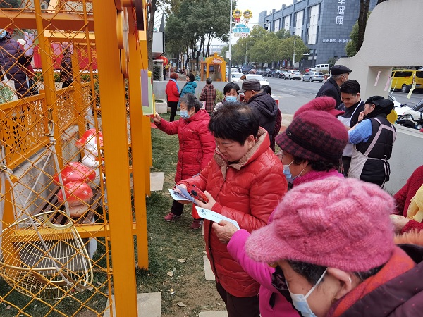 建邺区南苑街道庐山社区在做好疫情防控的前提下,在新办公房门口开展创新党员冬训“喜爱相逢 欢度元宵”活动,为居民送上节日的祝福。