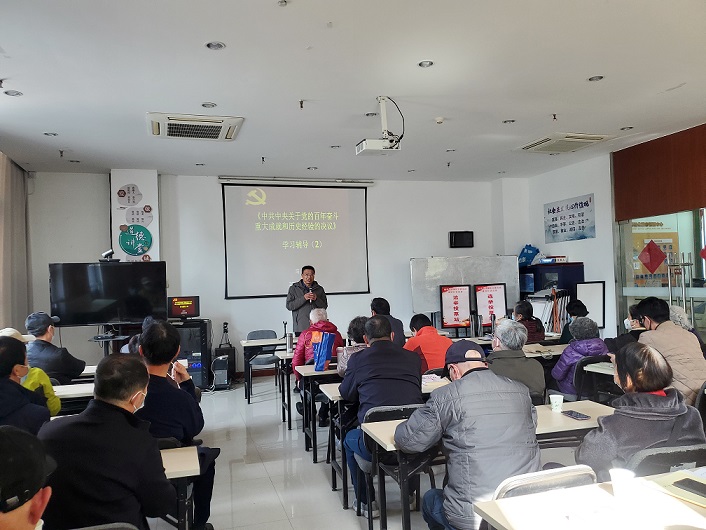 为提高基层党员的政治理论水平,提升党性修养,3月9日下午,融侨社区新时代文明实践站邀请浦口区政府教育督导室主任陶道均为党员开展《中共中央关于党的百年奋斗重大成就和历史经验的决议》主题讲座。