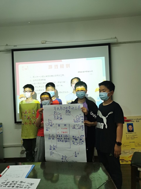 活动伊始,社工首先从“五一劳动节”入手,通过提问、故事讲述,带领孩子们了解“五一劳动节”背后的深刻内涵;更通过新中国史、党史的穿插,让社区青少年深刻领悟“劳动”是中华民族的优良传统美德,看到“劳动人民”在中国共产党和新中国建设和发展中发挥的重大作用。接下来,志愿者还与孩子们一起互动,通过辨识“农具图片”,掌握不同农具的不同作用以及它们在日常生活中的应用。