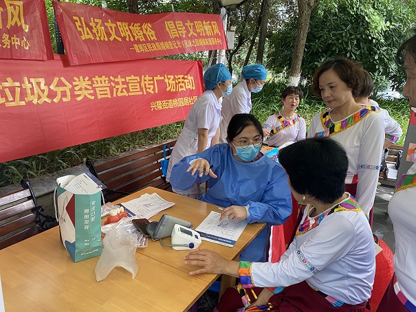 活动在舞蹈《最美西藏》中拉开了帷幕,在《欢天喜地》的表演中推向高潮,居民在动人歌舞表演中共同享受节日的欢乐,共同祈愿山河无恙,祝愿端午安康!演出中还穿插了文明婚俗宣传、反诈骗宣传、圾分类知识有奖竞答等,现场观众争相抢答,气氛热烈,社区还为每位答题正确的居民送上一份礼品。现场周围还有志愿者们为居民提供免费理发、修伞、磨刀、补鞋、义诊等热门便民服务项目,居民都对此次贴心服务赞不绝口。