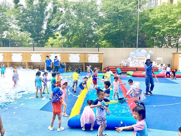 活动现场,孩子们在泡泡和水池中,尽情玩耍,欢笑声、嬉闹声汇聚成欢闹的海洋。一份节日礼物,一场有意义的活动,几个有趣的小游戏,营造了快乐和谐美好的节日氛围。