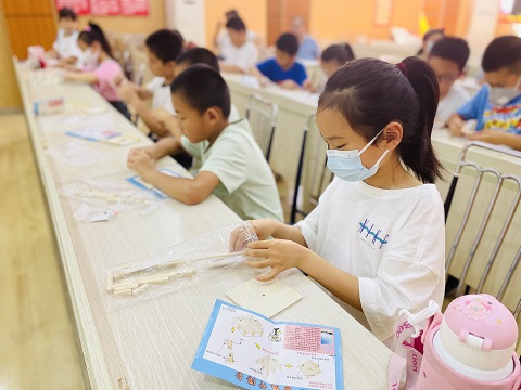 学习了关于国旗的小知识,老师给每一位青少年发放国旗升降台的材料包,跟着老师的步骤,大家按照老师的要求拿出相对应的材料进行组装搭建。