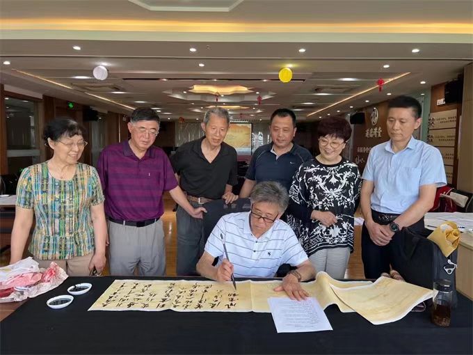 此次红色书法交流活动邀请到了江苏省、南京市美术家协会会员,江苏省国画院特邀画家、书法家,南京市魏紫熙艺术馆山水画研究会会长,南京市魏紫熙艺术馆山水画技法专职教授魏莉女士以及南京市老科协书画专委会的8位专家。现场弥漫着浓浓的墨香,新时代文明实践站志愿者、居民朋友、书法爱好者、书法老师欢聚一堂,他们挥毫泼墨,互相交流,尽情享受笔墨芳香,以一幅幅刚劲有力、意境悠远的书画作品,充分表达他们对党和祖国的热爱,以及他们对生活的无限热爱与对艺术的不懈追求。