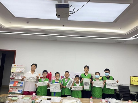 听完了理论知识的讲解,老师也带来了许多工具,给了孩子们自己动手实践的机会,让孩子们现场体验了一次穿越回古代,像古人一样拓印的感觉。孩子们个个积极参与,乐在其中,忙得热火朝天,不亦乐乎。最后孩子们都做出了自己满意的作品,捧着自己亲手拓印的作品与老师合照,宣告着这次非遗传承活动的圆满结束。