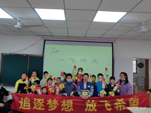 南京青少年科技协会承办的社区教育在立足自身科技特色的基础上,寓教于乐。本期共开展两场活动,首场“一飞冲天”设计初衷旨在通过自己动手的方式,来了解火箭基本组成结构。活动伊始,青科教的老师先带领大家认识了中国空间站和长征系列火箭,在讲述完火箭发射原理之后,又联系实际进行原理的举一反三展示。最后以亲身体验发射水火箭作为活动的结束。