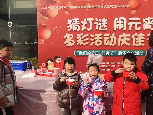 元宵节,又称上元节、小正月。 正月十五吃元宵,是在中国由来己久的习俗,通过品尝着热气腾腾象征团圆吉祥的元宵,感受到社会大家庭的温暖。在和居民们介绍了元宵的食材后,小朋友和家长们分工合作,揉面团、放馅料、做团子,不一会,盘里的糯米面都变成了大小不一寓意着团团圆圆的团子。到了品尝元宵的环节,大家吃着自己亲手做的元宵,吃到嘴里,甜在心里,乐在脸上。此次活动,既让居民感受到传统文化的魅力,深入了解了民族习俗,增强民族团结,也让小朋友们体会到动手的乐趣、团结协作的力量,增进了邻里关系。
